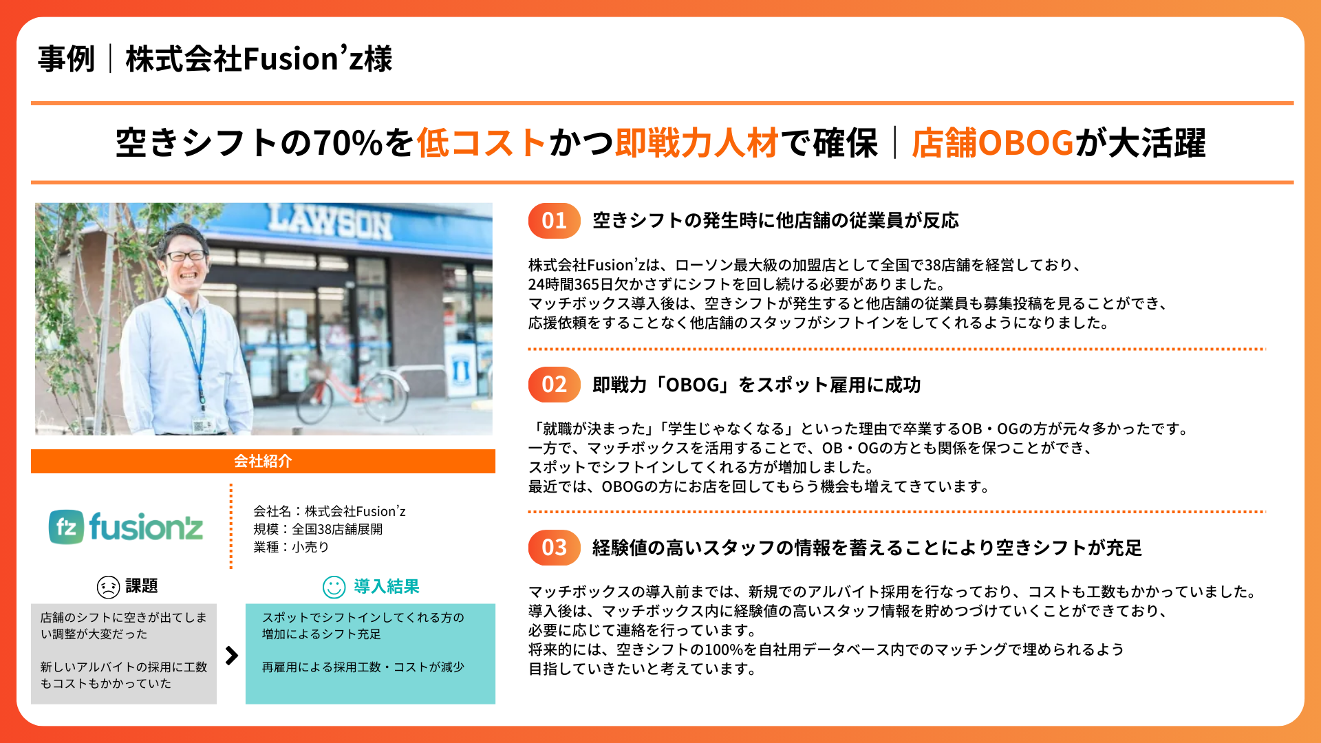 マッチボックスを導入している企業様の事例集です。自社でマッチボックスを活用できるのか気になる方、ぜひダウンロードしてご確認ください。